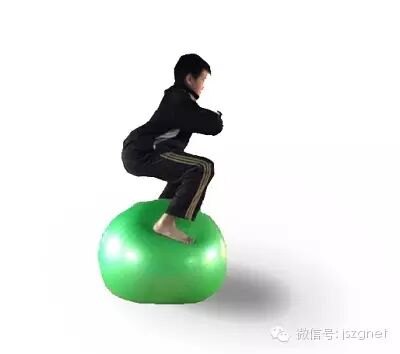 3、(A)蹲起练习,徒手站立于平衡球上,两腿开立比肩稍宽,做蹲起的动作;(B)或者单脚站立于平衡球上的蹲起练习,呼气,向下蹲;(C)吸气,站起。此类动作过程中要保持脊柱处于中立位,不发生扭转或屈髋的动作。如想加大难度,可采用负重蹲起的练习方式。