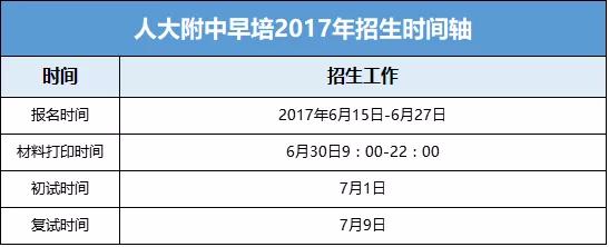 人大附中早培班:新用户注册->登录->填写报名表->网上初审->面试->录取