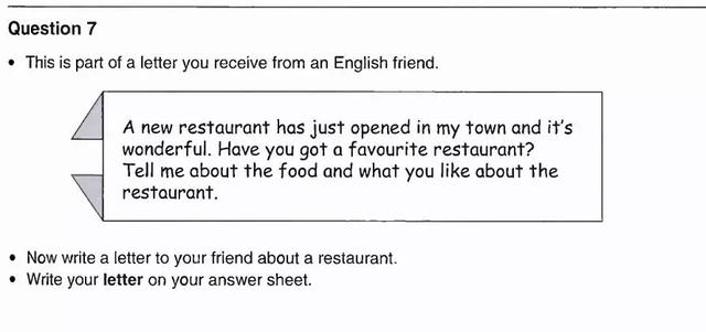 你可以发现回信里的模板还是非常一致的,文中前后部分橙色的强调部分就是这道题的模板句,基本每道题都得用上。 因为一定是回信,并且回答他在信中所问你的话题,所以第二段开头我们就应该固定一个句子:As you mentioned in your letter about XX, I am going to tell you a bit about ...... 这句话还可以写成As you asked me about whether I had my favorite restaurant,..