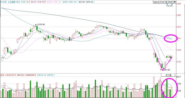 上证指数60分钟进行分析,大盘在3100点获得支撑之后出现了反弹,这一波反弹是被动的,是跟随全球股市出现的反弹,从大盘本身来讲仅仅是一次超跌反弹,目前均线来看依然属于空头排列,中长期均线都是向下继续异动,短期均线的拐头并不能确认底部形成,周二的阳线量能名下不足,不排除这个位置大盘会再次出现震荡调整的走势。