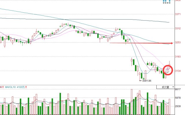 上证指数60分钟形成了红三兵K线组合,并且这里有可能形成小双底的形态,反弹能否持续呢?首先,60分钟级别这一波反弹还具备上冲动能,毕竟几大权重板块都有动作,周五或者下周一只要权重有一个或者两个板块再冲一下,指数还能可以反弹。但是另一方面,毕竟这是一个小周期的反弹,上行空间比较有限,一次性想要突破3250点附近的压力位还是难度较大的,特别是目前量能来看没有出现放大迹象,资金有进场但这部分还是资金还是以场内资金为主。