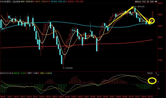 创业板走势是非常标准一个回踩的过程,回踩的位置就是在120均线的位置,然后反身向上,MACD在0轴上方再次金叉,这又是标准一个向上进攻形态。目前这个趋势就清晰了,短期可以继续看反弹,只要短期均线没有死叉120均线,这个反弹趋势还会继续维持下去,而创业板一些龙头概念也启动的迹象,短期走势还是较为乐观的。