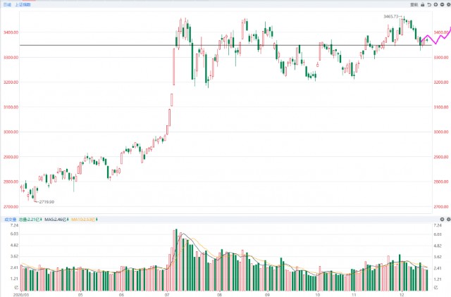 近期大盘都不需要多讲,上证指数还是坚守3344点,昨天是券商挺了一下指数,今天是银行和保险挺指数,多方目的就是要守住3344点,等待12月底和1月初这个反弹时间窗口的来临,现在并不是最佳的机会,也不必强求。中小市值个股出现大面积调整但是创业板指数依然是收红的,创业板也是挑选了一些大市值品种再挺创业板指数,包括宁德时代和爱尔眼科创业板流通市值最大的两只品种都是收红的,宁德时代这不到3个点的涨幅就是对于创业板影响很大的,流通市值是3531亿,比其他个股市值要大很多,所以创业板勉强收出了一颗阳线,即使是这个局面创业板指数依然有机会创出新高。
