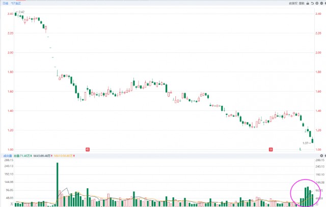 第一个类型:以ST金正、ST宜生、ST荣华等这一批ST个股为首的垃圾股,这一类个股基本是没有大资金入场的,或者说是没有主力资金控盘的品种,那遇到这个情况持有的筹码就是比谁跑的快了,基本都是不计成本的大幅抛售,ST金正表现最为明显,从12月9日到12月16日这几个交易日就是不计成本的出逃,大幅卖出、市价委托能跑多少算多少了,这是一个正常的节奏,因为实在没有炒作的理由和原因了,既然是没有主力资金控盘也就不必再去挣扎了。