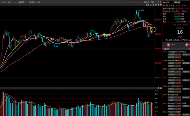 周二,上证指数小幅高开3424点之后出现一波分时反弹,10点之后再次出现一波下探,这一波下探的原因还是因为市场信心不足造成的,盘中各个板块开始集体发力,这一波反弹是因为板块和个股连续下跌之后出现了超跌反弹,比如环保和文化传媒板块都是典型的超跌反弹,集体的超跌反弹带动了指数震荡上扬,而周期板块出现了调整。