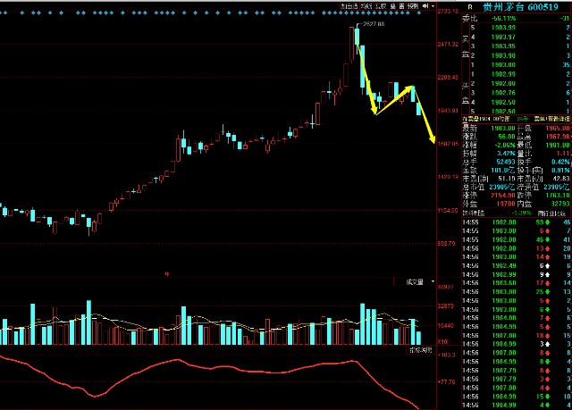 今天各大指数下跌最为明显的就是沪深300指数和股指期货,所以那下跌最主要的动能就找到了,就是沪深300指数当中龙头品种,最典型的就是贵州茅台,不要小看这些龙头品种对于指数的影响,按流通市值来看茅台的市值早都超越工商银行了足见对于指数的重要性,下跌接近3%就很难受,更重要的是带动一批核心资产类个股集体下挫,包括京东方、TCL、天齐锂业、比亚迪等,通过茅台周线来看是一个周线级别的ABC浪的调整,B浪反抽结束之后准备开始杀C浪了,向下的调整空间依然是存在的,大龙头集体下挫是不利于指数起大级别反弹行情的,只靠二线权重煤炭和有色带不动指数。