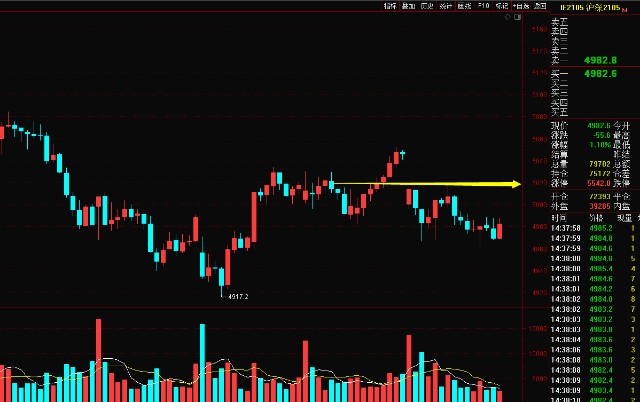 之前文章我讲过下一步大盘和板块会有两个选择,如果市场资金驻扎金融板块,那金融板块领涨带动指数能够形成新一轮上攻行情,那就是要选择向上突破了。但是如果资金选择了医药板块,就体现出资金的防御性特征,说明并不看好大盘,盘口特征来看大盘短期向下调整压力依然较大。昨天也讲到了股指期货,IF2105合约需要守住5020点位置不破大盘会迎来一波反弹,但是早盘直接一个低开5020点就被轻易的跌破了,盘中甚至连回补这个向下跳空缺口的欲望都没有,说明股指期货和指数走势还是比较弱的,如果周五出现反弹,只要不过5020点就不要轻易上手,大盘还是会维持震荡调整的走势。