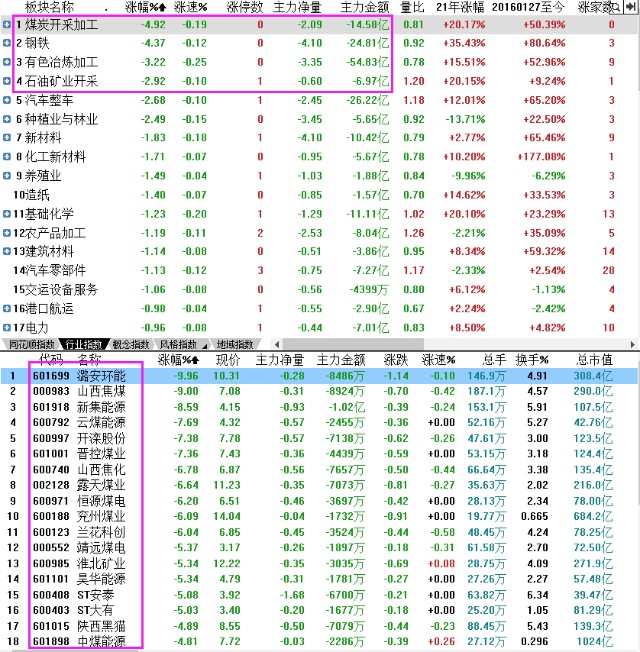 周四,因为外围股市集体下跌的影响下,A股市场也是直接低开30个点,低开之后指数全天保持震荡下行的走势。盘中最明显的一个特点就是煤炭、钢铁和有色等周期板块出现集体下跌,期货市场黑色系也是全线大跌,铁矿石下跌超过8%、焦煤、动力煤下跌都超过5%,周期类板块短期进入到了震荡周期当中,风险还是比较大的,暂时这个板块是需要回避的。那热点在哪?集中在了中药板块,吉药控股、新光药业等先后涨停,不仅仅是消息面的刺激,这只是一个外因,从近一段时间来看资金始终围绕着医药板块来布局,从医美概念、养老概念再到中药概念,医药板块各个细分概念都被不停的挖掘市场机会,这说明什么问题?