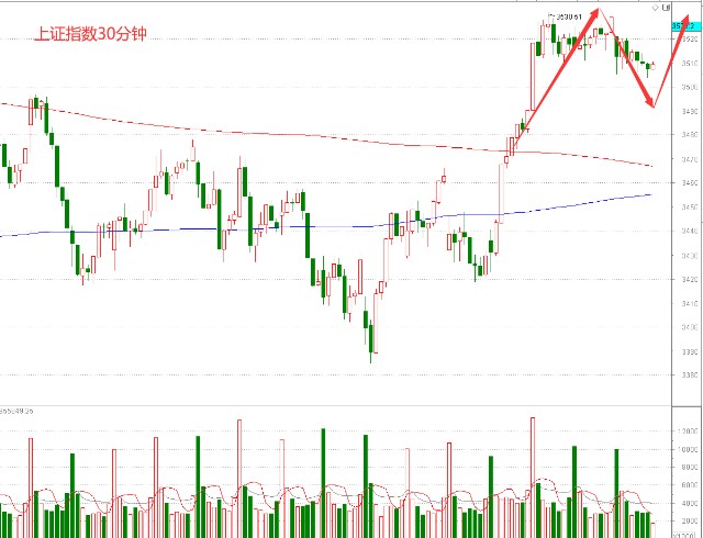 上证指数凭借着5月14日和17日两颗中阳线的反弹,已经突破了中期震荡结构,短期进入到了反弹趋势当中,从大盘30分钟来看明显是一个快速突破的行情,突破之后开始震荡调整的走势,所以近期出现的技术性调整是符合预期的,这个位置缩量洗盘调整更有利于大盘进一步上攻,预计回调的位置一个是3500点整数关口,这个关口看看金融板块要不要出来护盘,还有一个短期关键支撑位是在3497点,虽然这两个位置只是相差3个点但意义是不同的,3500点是一个整数心里关口,3497点是重要的技术位置,相对来讲3497点更重要,所以短期的调整只要不破3497点就是属于比较强势的回踩确认,目前指数是3510点附近,还有10个点的下调空间。