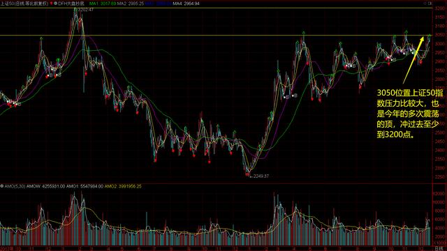 上证50指数当前面临3050指数的压力,这个压力是全年的压力,一旦突破过去就是3200点这个位置。