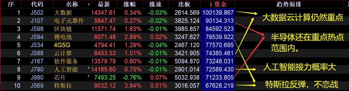 4、特斯拉板块反弹,力度也不算小,但是领导反弹的股票也都高位,很难持续拓展空间,我觉得还是按照反弹来做,不要恋战。