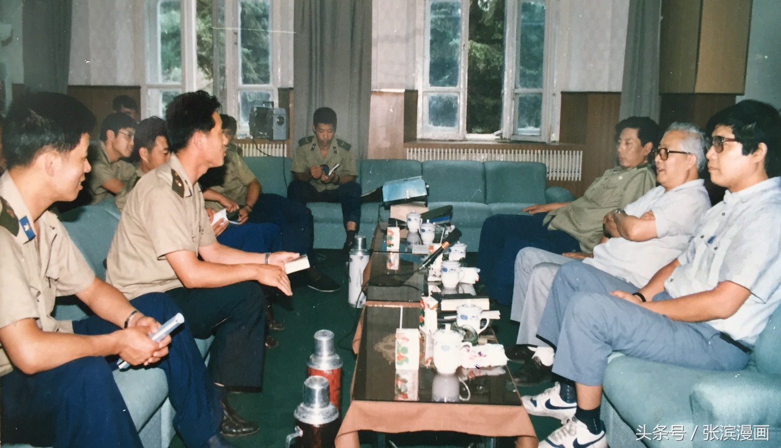 那年冬季,英韬、江帆、王复羊、常铁钧、徐进、陈玉先、晁锡弟等名家专程到学院参观《军校漫画展》,与空地勤漫画作者们进行座谈,还乘坐了4202号伊尔14专机,从一个机场飞到另一个机场体验生活(有视频资料)。次年夏,华老约上海《文汇报》漫画家沈天呈到哈尔滨参观《军校漫画展》,举办漫画讲座(有视频资料)。
