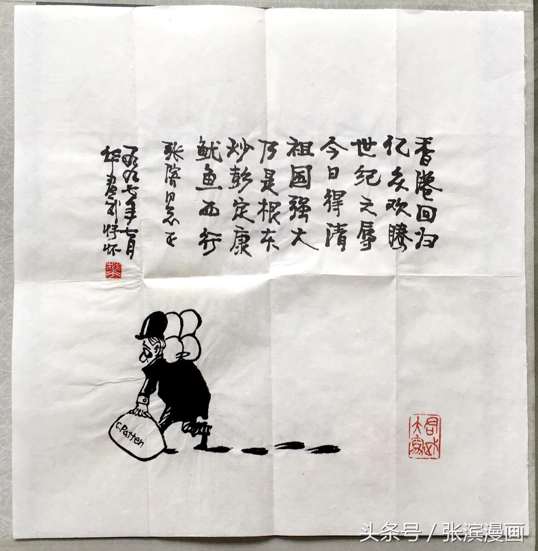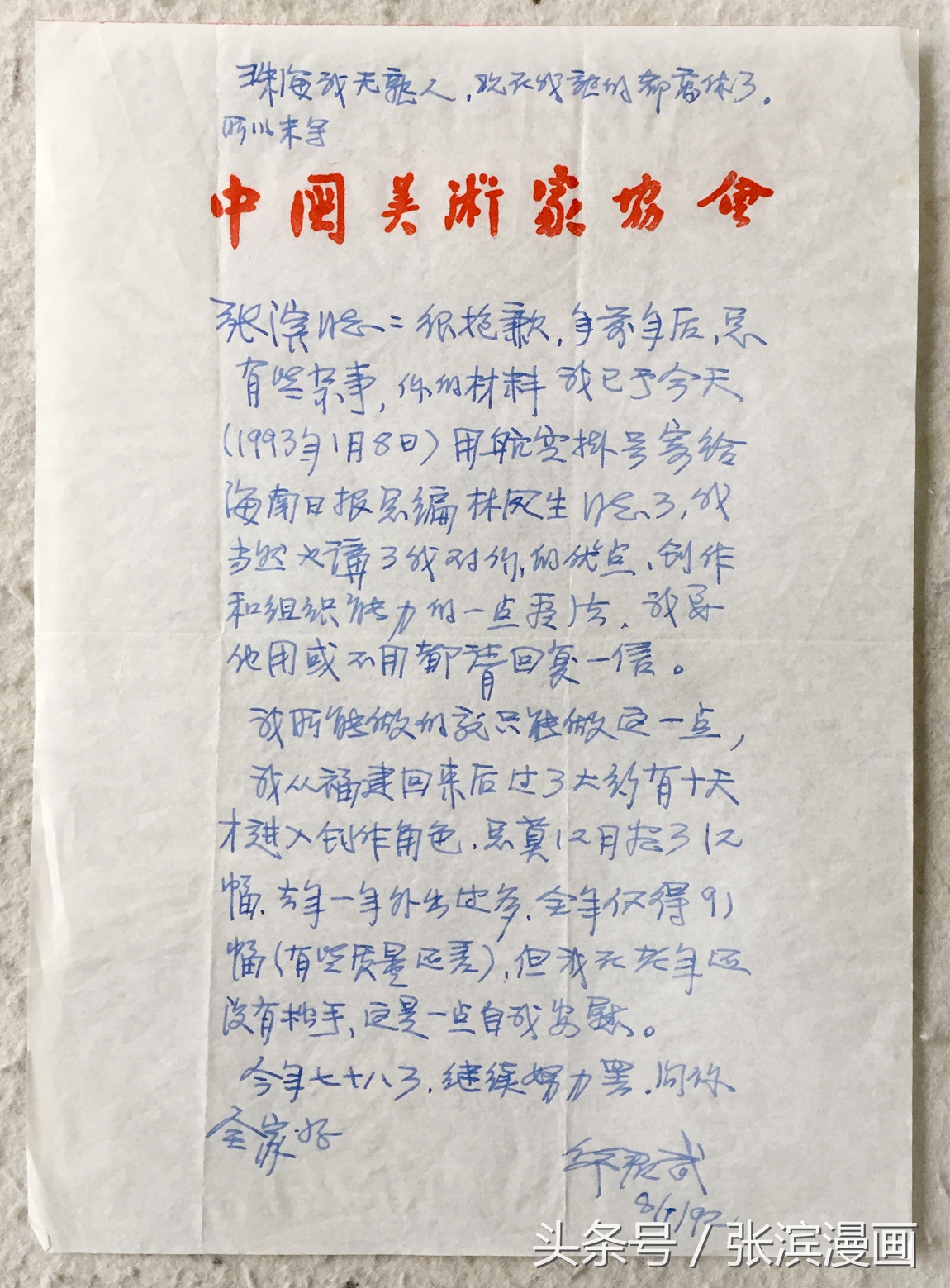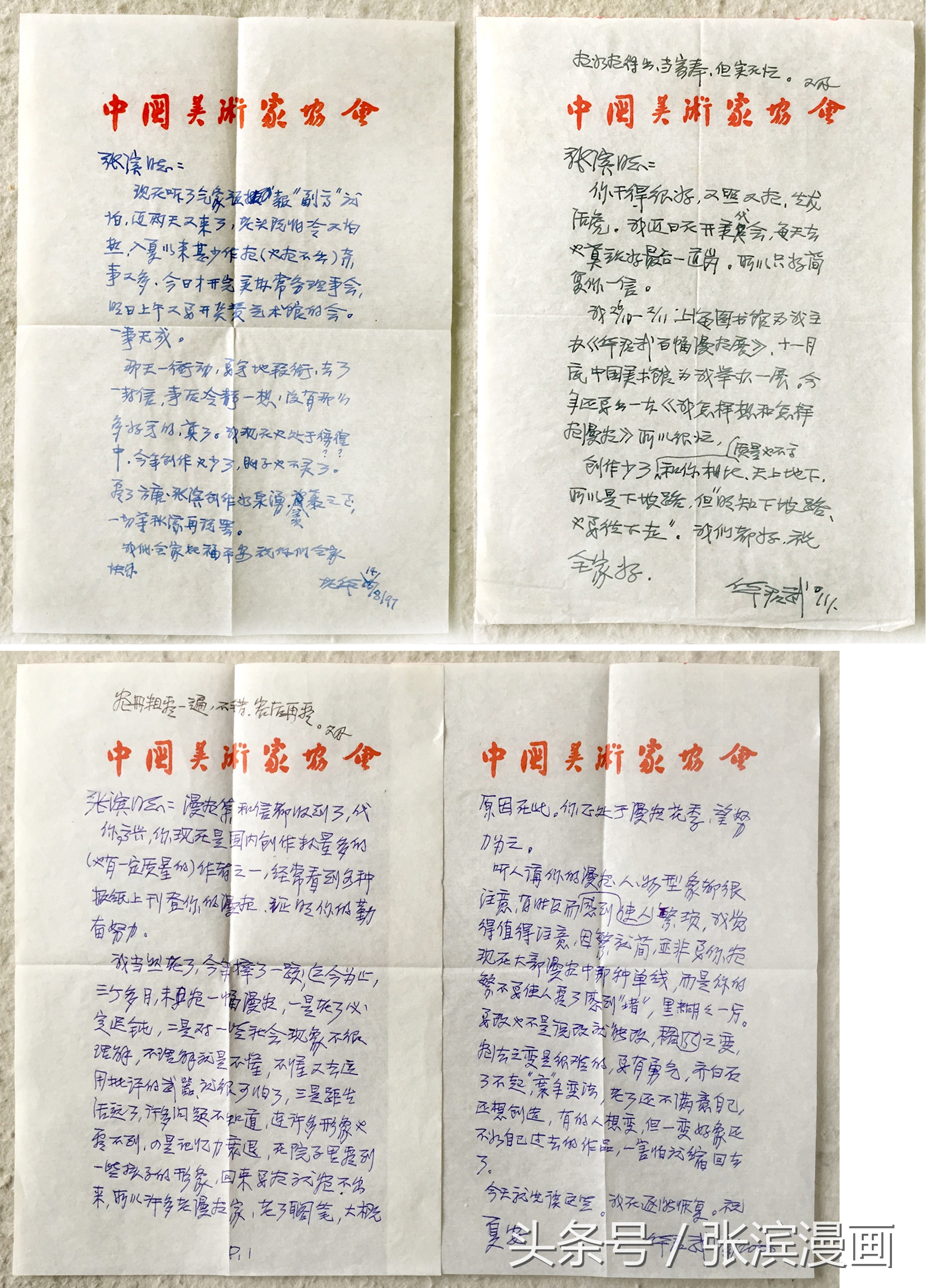 在那封信里,华老还写到:“我看你画的不少,当然你年轻应该画得多,印象最好的一幅,好像在《中国日报》上,画了一张又似飞机又似鸟的那幅。其余的也看得出在认真画,也已形成张滨风格。……你在创作上切忌自满,不断求进(思想、艺术)。……你年纪要一年年长大,涉世深了,也会悟出点道理,还可入画,但有些悲哀的,消极的就不要入画,以免去影响世人,总还是要做一个积极的革命乐观主义者好。……如转业,去何处?盼早告,也许我可当参谋。”那时我曾表示过很想到地方工作,专职从事漫画创作和编辑。