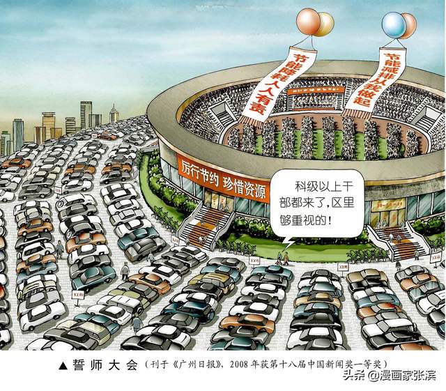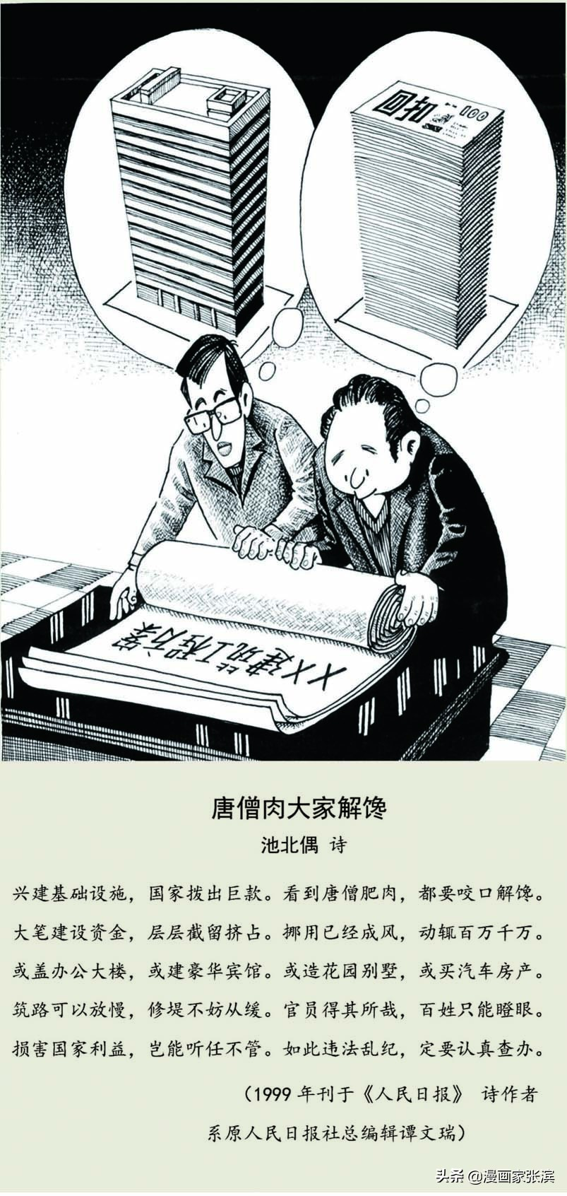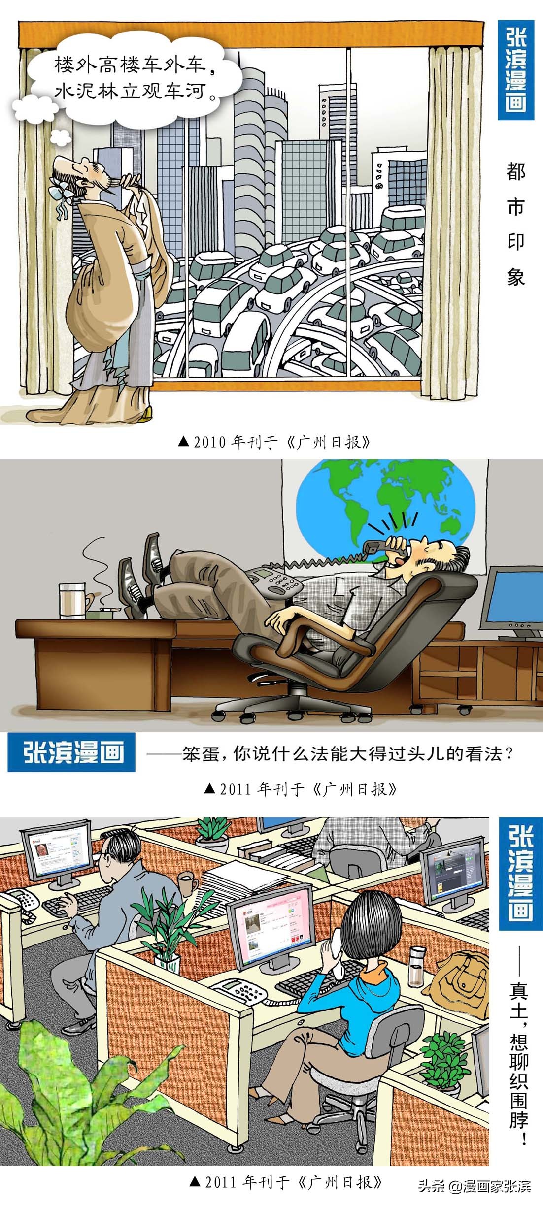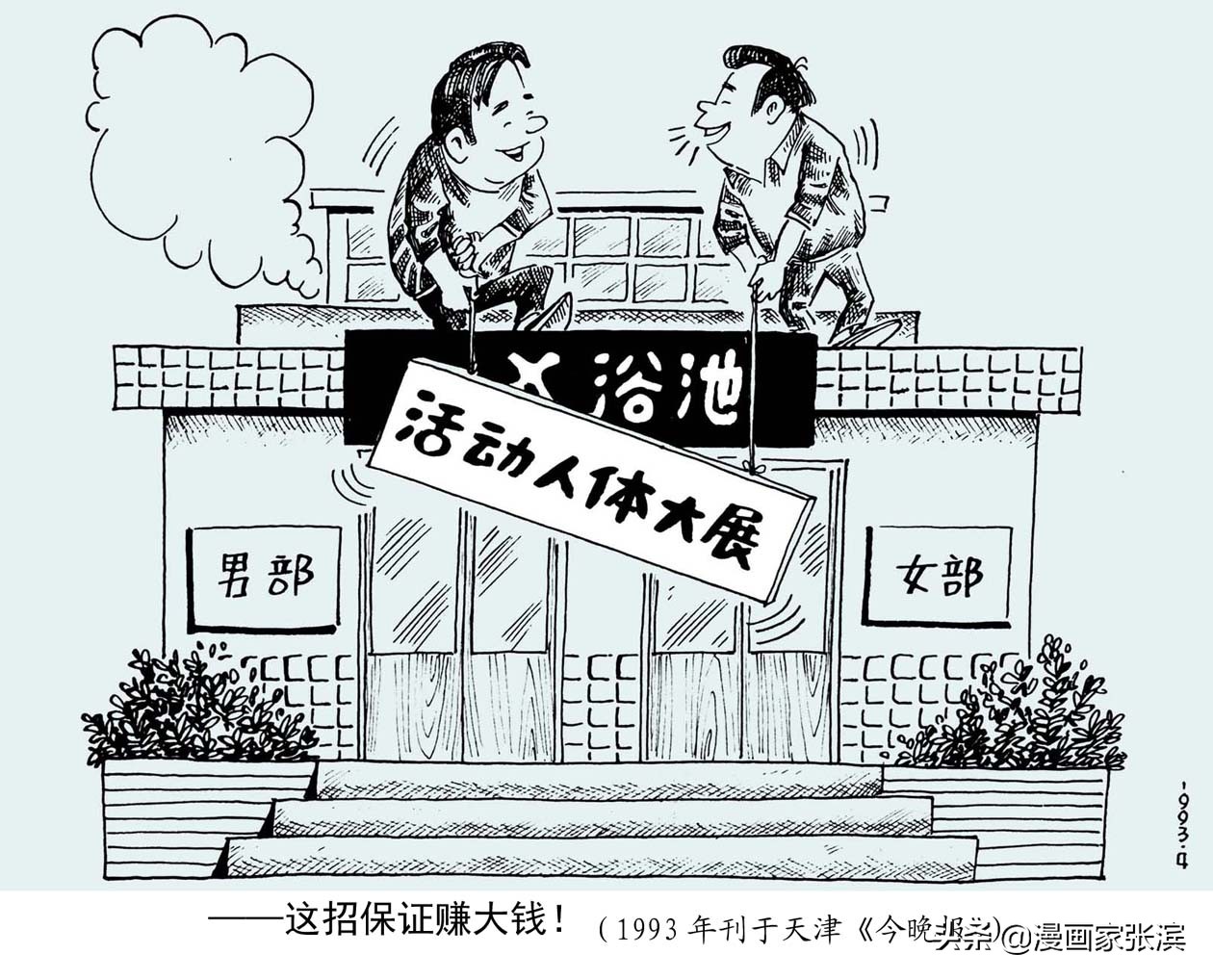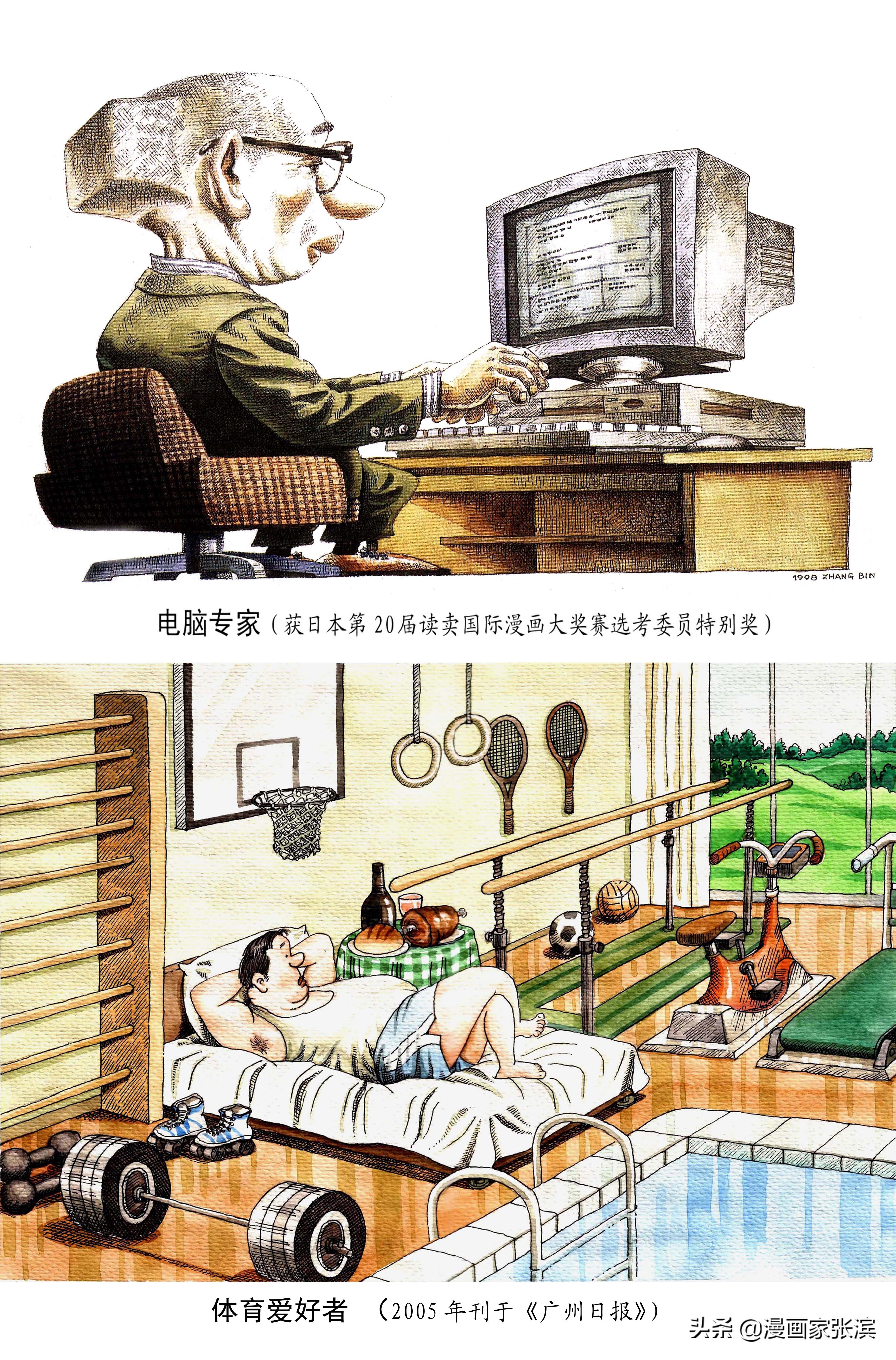 哦,想起一个插曲,方成先生1994年到黑龙江日报参加一次全国性漫画比赛评选时,曾在会议发言时专门向我提问:“张滨你在报社是只画漫画呢,还是美编们做的事都要做?”我的回答是:“只画漫画,编辑漫画专版。”方老面对当时的社长贾世祥说:“太好了,这对漫画家非常有利。许多报社的漫画家都要做与漫画无关的工作。”