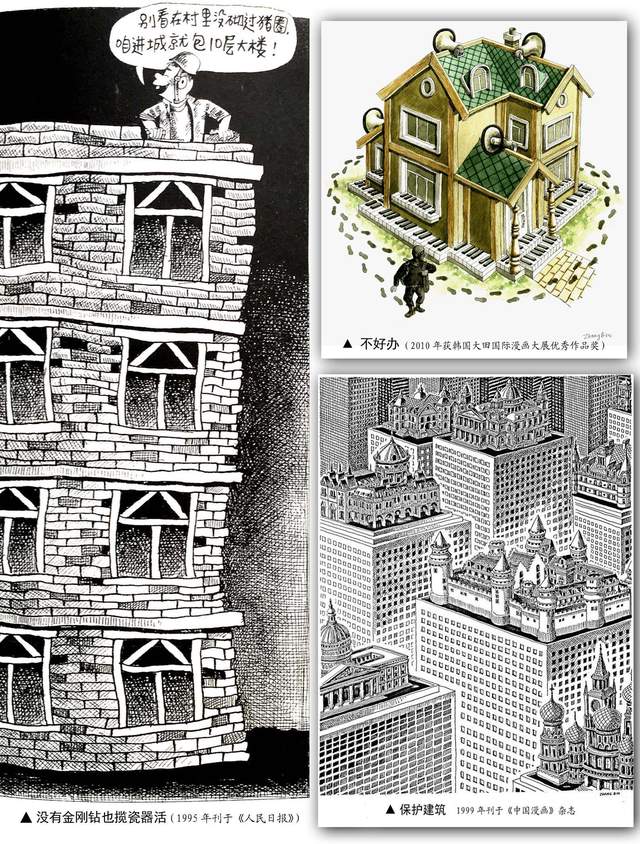 回到本文的主题,我虽无缘子承父业,但画房子貌似遗传。今天奉上我创作中画了若干房子的漫画,尽管远不如父亲画得好,还是希望朋友们喜欢。