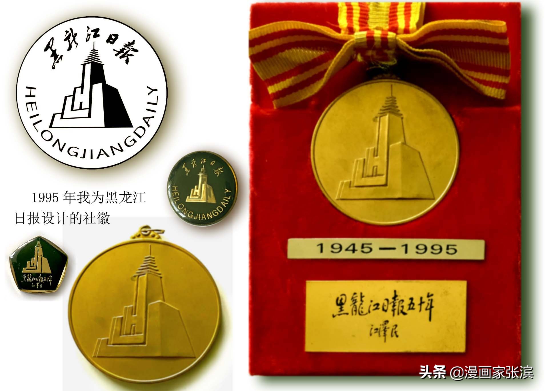 没想到次年黑龙江日报社成立五十周年,我这个只与漫画相关的人也参与了报社社徽的征集活动,而且一举中标,社徽随即被印制使用在一些场合与纪念品之中。当然我出手是因为报社的老建筑极具特色,有了涉及到房子的构思,不画不快而已。