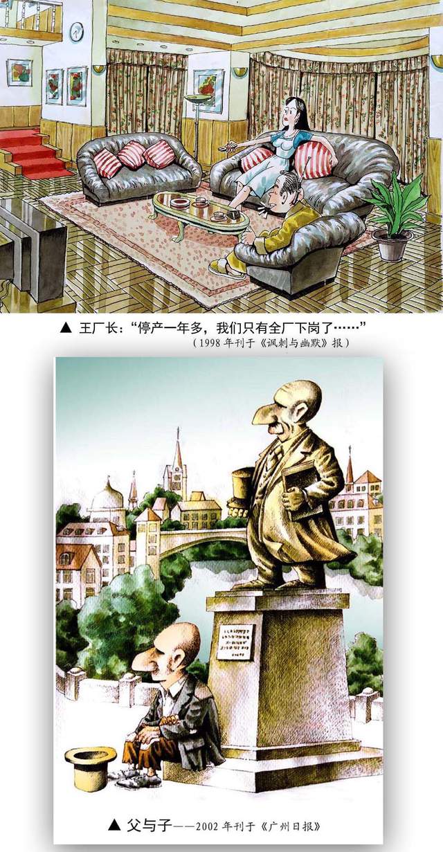 不讨论创意构思,仅涉及绘画风格,已故著名漫画家丁聪先生、方成先生、英韬先生、王复羊先生、孙以增先生等对我许多作品的看法都与华老的评价差不多。前辈们的鼓励,对我的创作水平提高和职业生涯发展起到很大作用。也可以说遗传基因使我与绘画有缘,而在传统漫画领域的成功则与前辈们的垂爱有关。