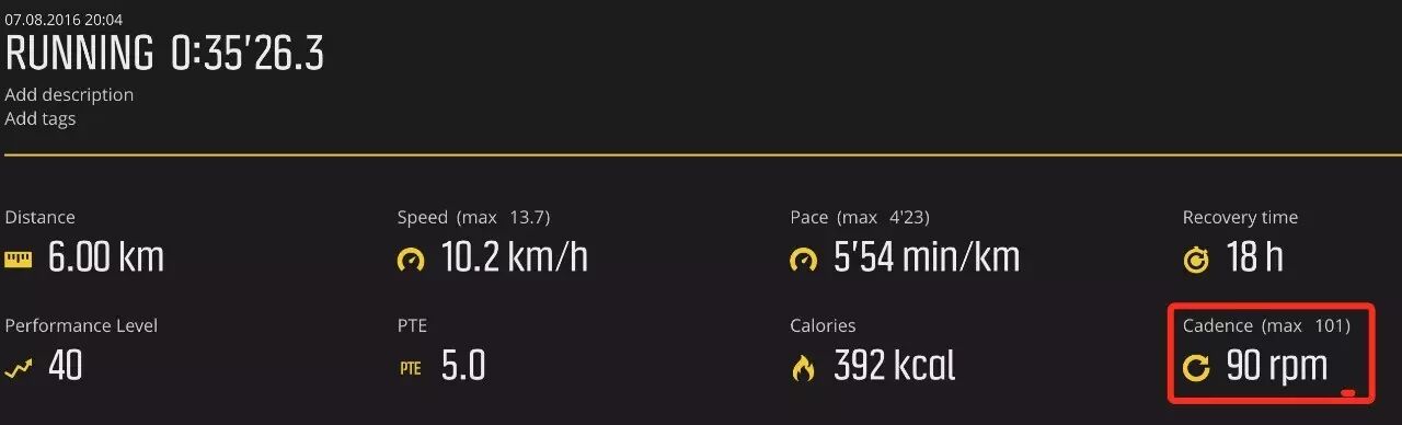 在SUUNTO MOVESCOUNT网站上,可以看到步频以“rpm”(resultions per minute)显示,90rpm(90对步/分),即一分钟左右脚的步数为180步。