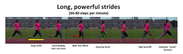 把步幅增大让滞空时间稍微变长,对大腿关节延展活动度的要求很高,也考验着小腿肌肉的弹性和蹬腿时的爆发力。要维持落地支撑的稳定,骨盆起着关键的作用,所以核心力量训练也必不可少。