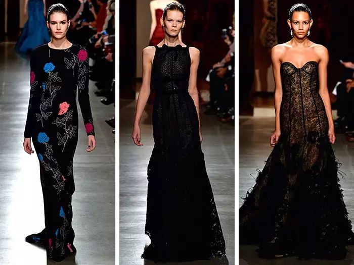 ▲在 Oscar de la Renta 辞世后,接手的 Peter Copping 用黑色表示了对他的哀悼与致敬,那些盛开在裙子上的繁花继承了老爷子的衣钵,却也有新人对于细节的表达。