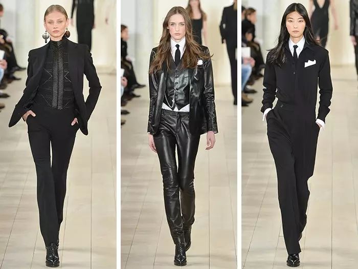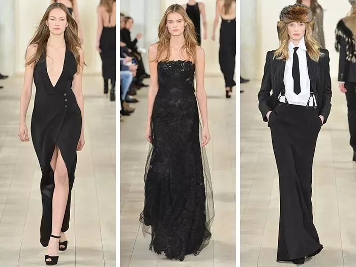 ▲Ralph Lauren 手中的黑色女郎有着帅气的正装和妩媚的晚礼服两种面孔。不过除了最后那件西装背带裙稍感惊艳外,其余都只能是不功不过。