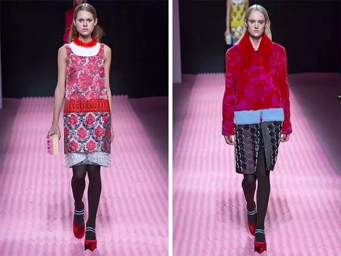 用粉红泡泡糖风格的超大锥钉装饰,与裙子上下方花纹形成一种错落,她甚至收集和研究了粉红色在十八世纪维多利亚时代的意义,并以现代的方式将其重新诠释。“它是耐力和力量的侧影。当鲜红色代表男性化时,粉红色便是另一种替代品。”https://mmbiz.qlogo.cn/mmbiz/9kQdltAfECcWokOJ0b6TPogsSiaxOySgNbcoULdjvrUI0fbYchvDZWVS9SMNaR9agpUv0GtxG9TUS2kBeWJ20sA/0