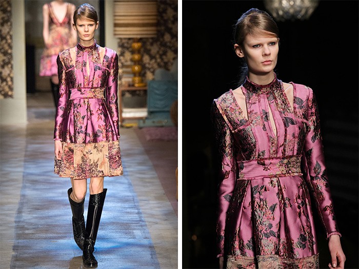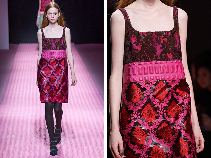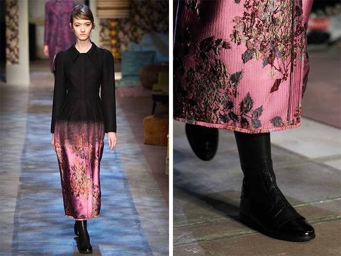▲Erdem Moralioglu 的刺绣技巧十分迷人,粉红锦缎与黑色之间的衔接自然又让人觉得不可思议。