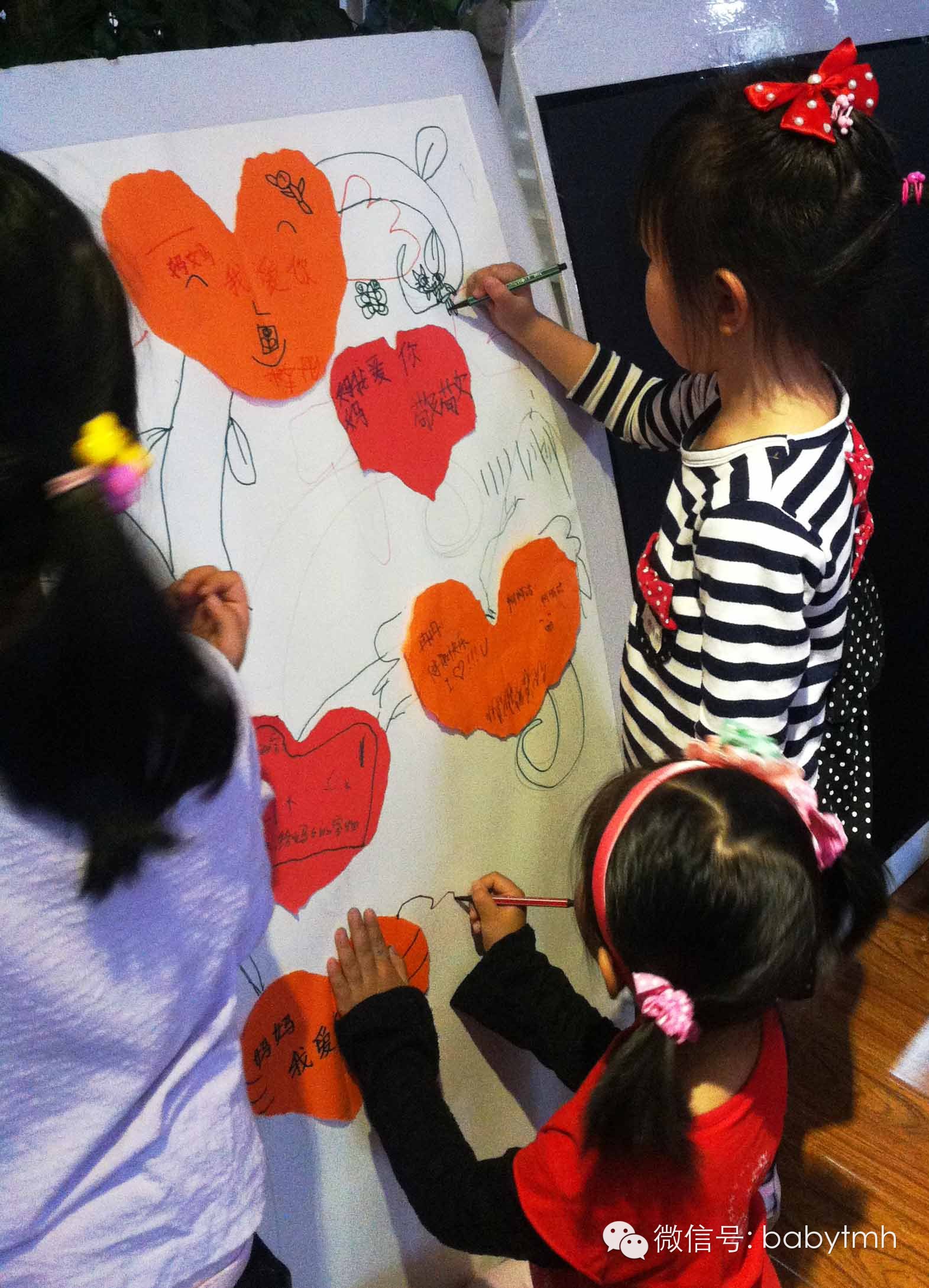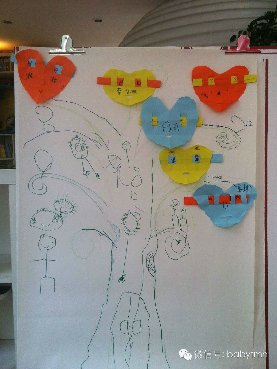 比如,老师提出:“桃心怎么画?”5岁的孩子不加思索地大声说出:“两个山峰加一个三角就是桃心”,3岁的孩子顺手就画了出来,4岁孩子说:“我画的比你好看”。课堂就是这么有趣。这仅仅是一个开始,在画和撕的基础上,老师还要引导孩子们继续往前走,去想象心的飞翔。老师说:“我爱音乐,要用五线谱去象征。”一个孩子马上说:“我爱色彩,我在彩虹上飞翔。”另一个孩子说:“我爱大海。”老师说:“让波浪带着你飞翔~~~~~”孩子们跃跃欲试,表现出飞翔的各种乐趣。接下来,孩子不仅要在眼前撕出桃心,还要在身体背后看不见的情况下撕出桃心,同时用变魔术的方式给桃心手工出一个可以变换的眼睛(睁眼和闭眼的纸条),来训练更难的技术动作及表达更丰富的情感。课程的热烈程度和爱心树的美丽超乎想象,如5岁的敬敬第一次上课就表现出勇敢和主动。2岁多的淏淏年龄最小,但难度系数大的活动也没被落下。很多小朋友不仅完成了课程的内容,还主动帮老师收拾环境,让我们记忆深刻。另外,璇璇、天天、瓜瓜、桢桢、壮壮、湉湉等小朋友,不仅画出了相当棒的画、做了手工,还争先恐后地戴着自制的桃心面具做了精彩的才艺表演,看到宝贝们瞬间迸发了巨大的艺术热情,让我们感受到小朋友的潜能无限。https://mmbiz.qlogo.cn/mmbiz/0icnZn7cICVEUMvpj0vhiaJpZc1iatPHhw1vNmsoItM7Sp67ddatxgdtXez6Wr0YAS27hbg7Ra2IdEaZa0Me8PxTQ/0