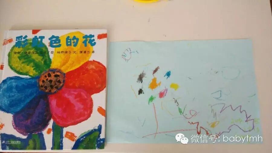 下面到我的手工环节啦,画出你心中的彩虹花吧(相同的主题,每个孩子确有不一样的个性化表现)