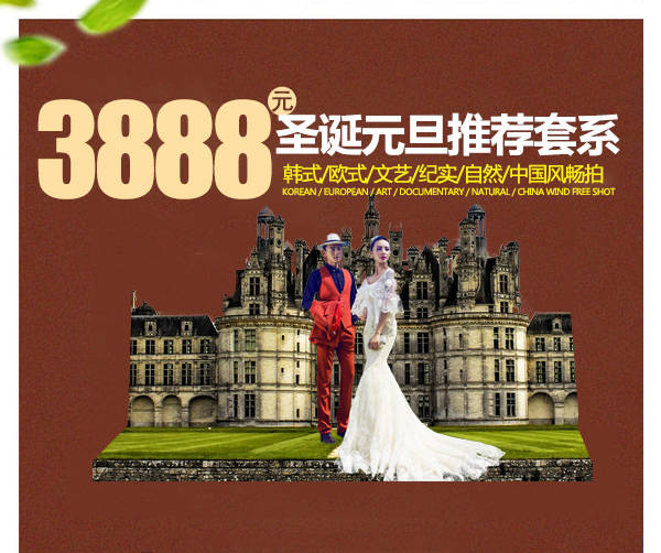 【¥3088性价比之王】2处内景 2处外景、10套服装(高级定制婚纱礼服)、2本豪华相册、11张放大、3000元礼包...