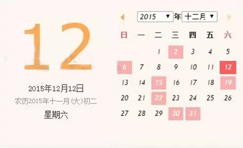 2015年12月22日 农历11月(大)12日 星期二 冲虎(丙寅)煞南