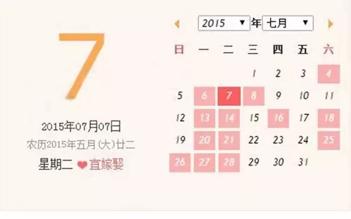 2015年07月04日 农历05月(大)19日 星期六 冲猪(乙亥)煞东