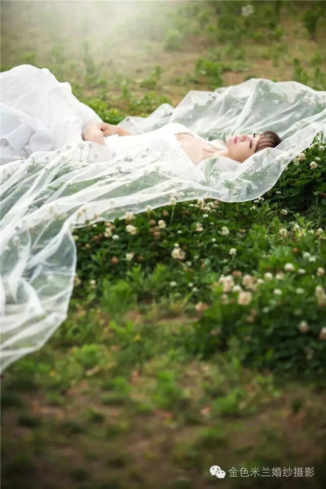 (婚纱)它如同蓝天中飘过的云,悬在空中,却印在海中,穿在身上,却印在心底那轻盈的沙被一丝风抚摸过,显的那样的温柔,它诠释着洁白的语言,带着晶莹的笑脸那样的漂亮,扣动着人的心弦,美的让人渴望,美的让人无法呼吸!
