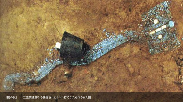 日本放送协会NHK播放的《中国文明之谜》第一集,与中国社科院考古所合作,对最新的夏商周断代工程考古成果进行了披露,在二里头夏代宫殿遗址发掘出了如下龙纹图腾: