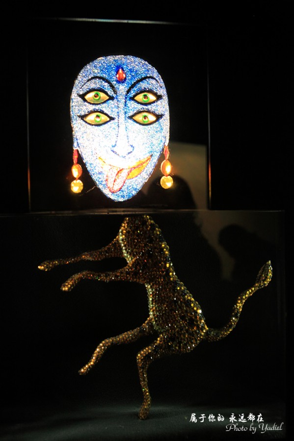 步入大堂,世界各地大师的水晶艺术作品比比皆是,在半明半暗的大厅中闪耀着夺目的光彩,有巨大的十字型黑水晶、三维转换水晶、水晶马鞍、水晶环等。