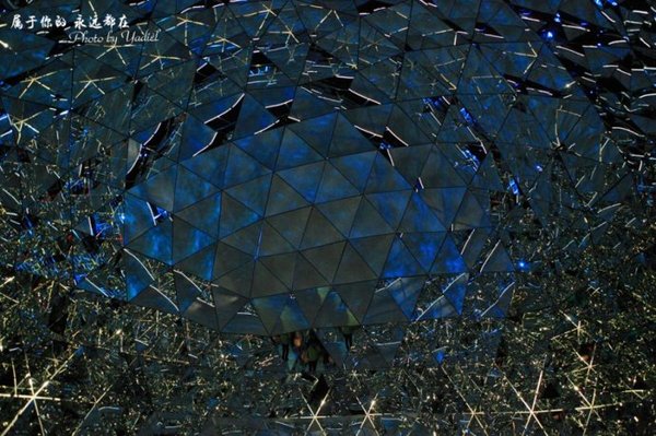 【P17】水晶穹窿,这里上下左右都充满了五彩缤纷的光影,声音和光线在595面镜子中反复折射。展厅不停地变换着红黄蓝绿等多种颜色,且音响效果尤为强烈。置身其中,只有慢慢地、努力地才能看到隐藏在其中的艺术品。