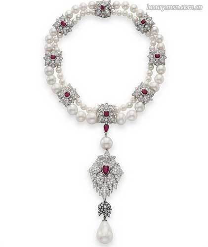 价值:1,828,224美元在1900年前后,女王将这件绝美的项链赐给了她的孙女——玛格瑞特公主。玛丽女王另外一条同样闻名于世的项链名叫“La Peregrina”,全部由大颗珍珠和红宝石穿成,至今已有约500年的历史。
