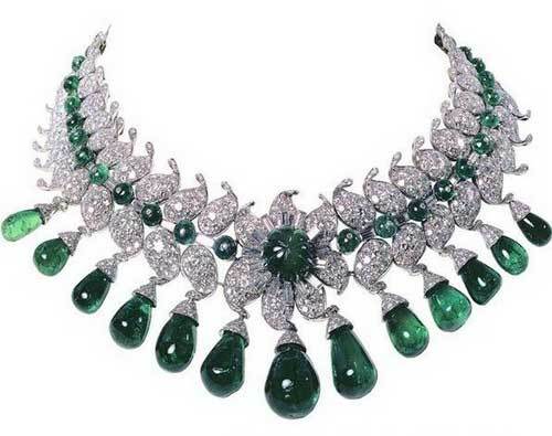 9.意大利王室的绿宝石项链这条晶莹剔透的绿宝石项链的女主人是意大利最后一任女王:Marie Jose。她以自己众多的精美的珠宝收藏而被世人所知,这条项链就是女王众多收藏中的一件。它由无数的钻石以及精美的绿宝石所组成,银绿交映,夺人心魄,由著名法国珠宝制造商Van Cleef and Arpels所制。