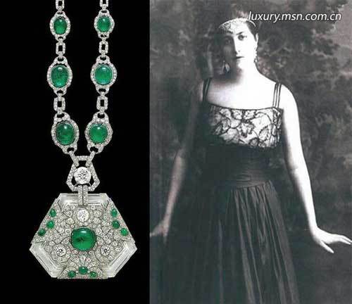 8.充满艺术气息的绿宝石项链这条美丽的项链的女主人是西班牙的一位著名舞蹈家Anita Delgado,后来的卡普塔拉公主。这条华丽的项链由晶莹璀璨的钻石、绿宝石和水晶石组成,作为著名的珍宝拍卖品在伦敦Christie拍卖行留下过身影,还曾经是印度王公最爱的大象装饰,目前估价为大约10万英镑。