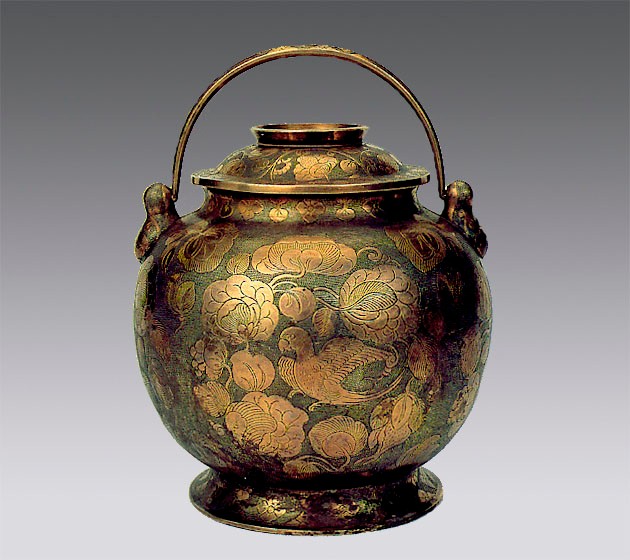 唐·鹦鹉纹提梁银罐