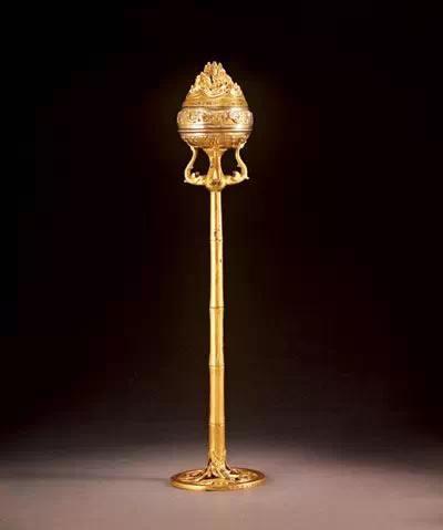 汉·鎏金鋈银铜竹节熏炉
