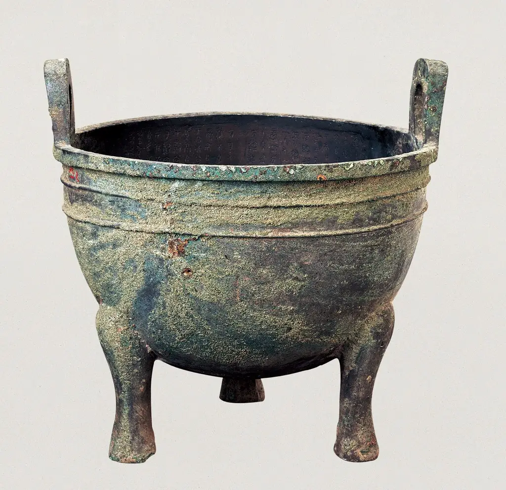 多友鼎属西周晚期文物,通高51.5厘米,口径50厘米。1980年陕西长安县下泉村出土。鼎铸于西周厉王时期。腹内壁铸铭文二十二行,二百七十九字,记载了西周历王时期回击猃狁侵犯的一场战争。其铭文是次要的上古文献,关于研究匈奴史及事前社会的政治、经济、军事战争易近族关系,有着重要的科学价值。铭文结构凝练,笔迹秀丽,又是中国书法艺术史中的次要篇章。