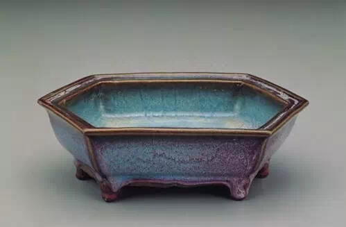钧窑瓷器历来被人们称之为“国之瑰宝”,在名窑中以“釉俱五色、艳丽绝伦”而独树一帜,它创造性地使用铜的氧化物作为着色剂,在还原条件下烧制出窑变铜红釉,并由此繁衍出茄皮紫、海棠红、丁香紫、朱砂红、玫瑰紫等多种窑变色彩,红里有紫,紫中有蓝,蓝里泛青,青中透红,青蓝错杂,红紫相映,宛如蔚蓝的天空中出现的一片彩霞,五彩渗化,交相辉映。