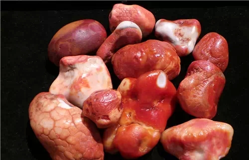 玛瑙也作码瑙、马瑙、马脑等,是玉髓类矿物的一种,经常是混有蛋白石和隐晶质石英的纹带状块体,硬度7-7.5度,比重2.65,色彩相当有层次。有半透明或不透明的。原形态三方晶系。常呈致密块状而形成各种构造,如乳房状、葡萄状、结核状等,常见的为同心圆构造。具有不同颜色构成的玉髓,通常有,绿红黄褐色,白色等多种颜色。按图案和杂质可分为缟玛瑙,缠丝玛瑙,苔玛瑙,城堡玛瑙等。常用作为玩物或观赏物。常用做饰物或玩赏用。古代陪葬物中常可见到成串的玛瑙球。