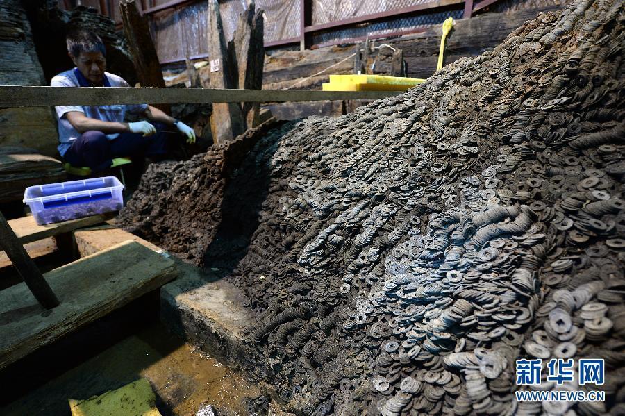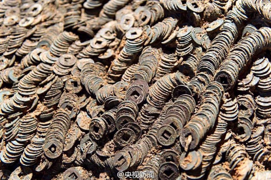 五铢钱初铸于汉武帝时期,是用重量作为货币单位的钱币。五铢钱出土首次以考古方式证明唐宋以来以1000文铜钱为一贯的校量方式最迟起源于西汉。 央视记者 谢乃川 郭晶 摄 图片来