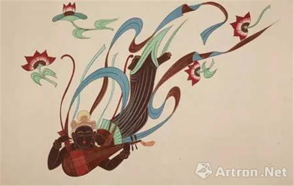 史苇湘临摹伎乐飞天42×80.7cm纸本1948