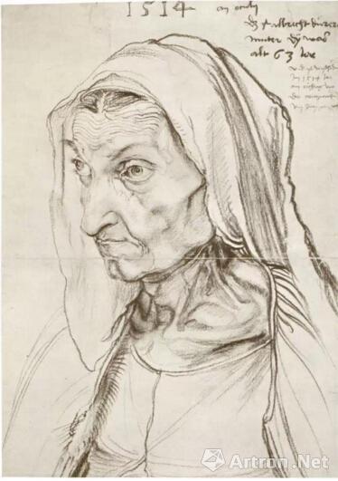 丢勒《母亲肖像》 1510~1514年间42×30cm 现藏于柏林丢勒美术馆木刻陈列室