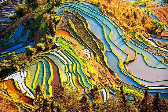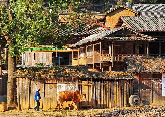 “坝美”是壮语的音译,意为“森林中的洞口”。穿过洞口来到此处,村里的人们基本上还沿用着300多年前的耕作方式,一层层的梯田安静地躺在阳光下,村民用木犁耕田,一步一个脚印地踩在泥地里,辛苦的劳作是为了填饱肚子。在这里生活的人们,自种棉花自家纺布,碾米磨面都用石,因为没电,就用沼气来点灯,用木柴烧火做饭,所以远远地你就能看到一缕缕饮烟袅袅升腾,它们抵达的地方是蔚蓝干净的天空。
