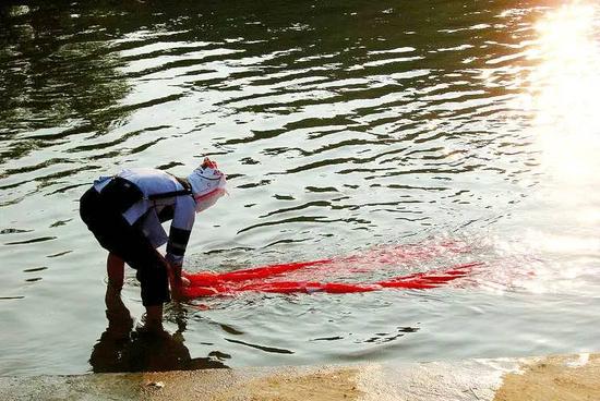 越过田地,环绕在坝美河流的中央有着一个桃花岛,由于河流被小岛分了个岔,所以坝美人称左边是“男河”,右边是“女河”。夏日炎炎之时,辛苦劳作的人们会赶在太阳下山之前,聚在桃花岛上,然后一头扎进河流中享受天然的沐浴,且男女之间绝不会越“雷池”一步。时至今日,在此沐浴的都是村里的孩子,他们赤条条地穿梭在两河之间,抓鱼、摸虾、嬉戏,爽朗的欢笑声日日都有。