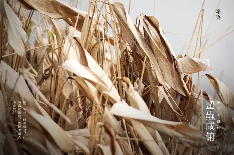 我国古代将霜降分为三候:“一候豺乃祭兽;二候草木黄落;三候蜇虫咸俯。”此节气中豺狼将捕获的猎物先陈列后再食用;大地感知深秋寒意,树叶也纷纷开始枯黄掉落;连蜇虫也全在洞中不动不食,垂下头来准备进入冬眠状态中了。